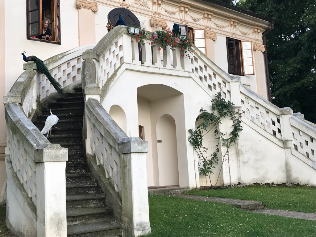 There is an adjacent deer park which I found pleasant to stroll through a couple of times, in the late mornings or afternoons when it was less crowded. The baroness who owns the castle still lives here. She asks only that you stick to the gravel paths and not walk on the grass, and to make sure to shut the wooden gate to the park behind you as you enter or leave the grounds, so that the deer that roam freely don’t escape. There are also colorful peacocks that inhabit the castle grounds.