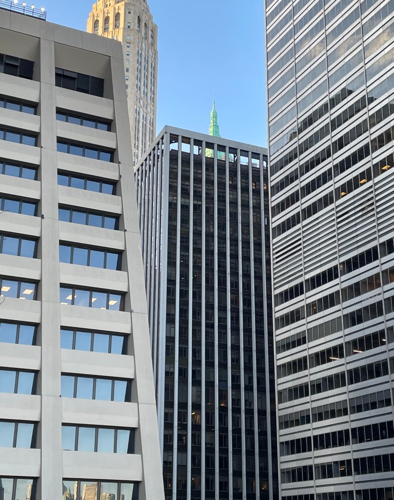 Head down Water street towards Battery Park and the location of the ferries to the Statue of Liberty.  Along your walk you will go past the S&P Global building, which has a balcony garden which is open to the public with views of the skyscrapers surrounding it and the East River.  I like to stop here and rest my legs while taking in the view of the forest of steel skyscrapers around me.