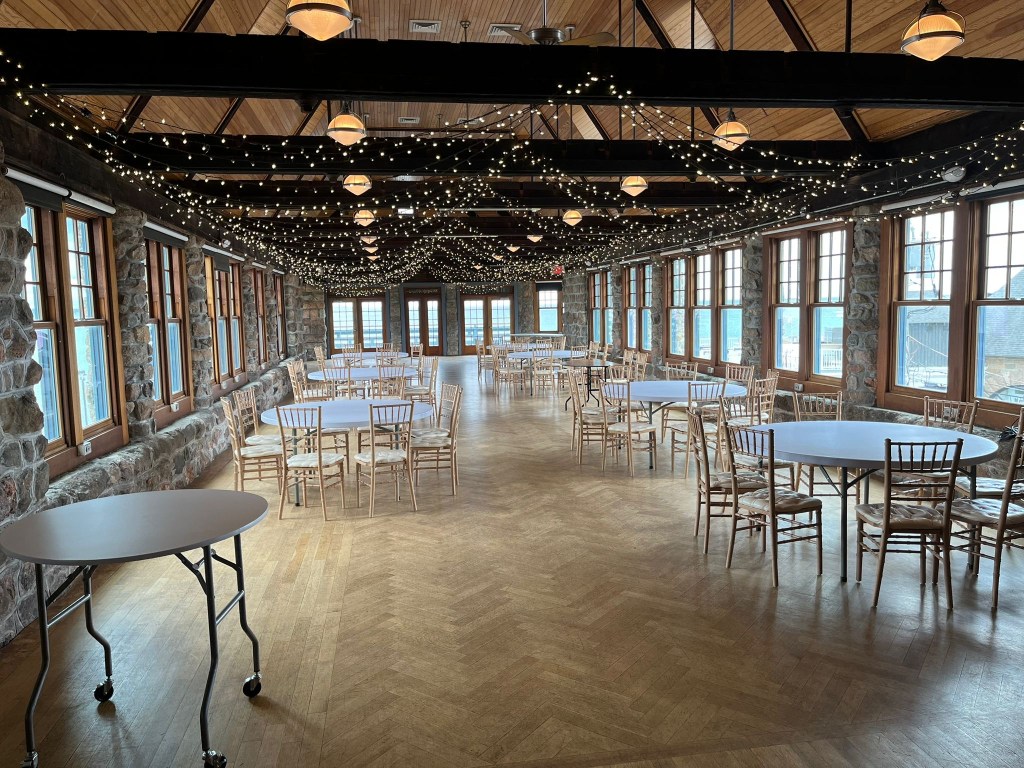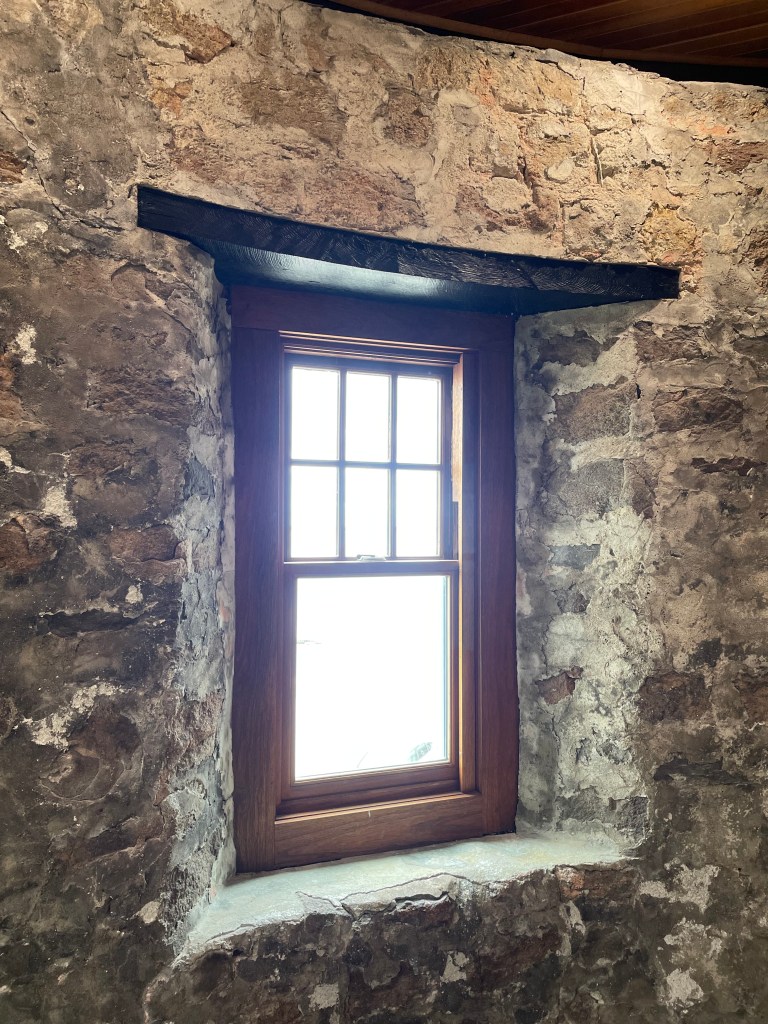 We were fortunate as we walked by to run into a descendant of the family who once owned The Towers. She was helping to prepare for that night’s celebration and when she saw us gazing up at the structure she waved us inside and let us take pictures. She was generous as well with her knowledge of how The Towers were handed down through the years in her family, showing us framed photos on the wall of the past fire damage and what everything used to look like. While not much of The Towers remain original, she did show us part of the brick wall that was original to the first building.