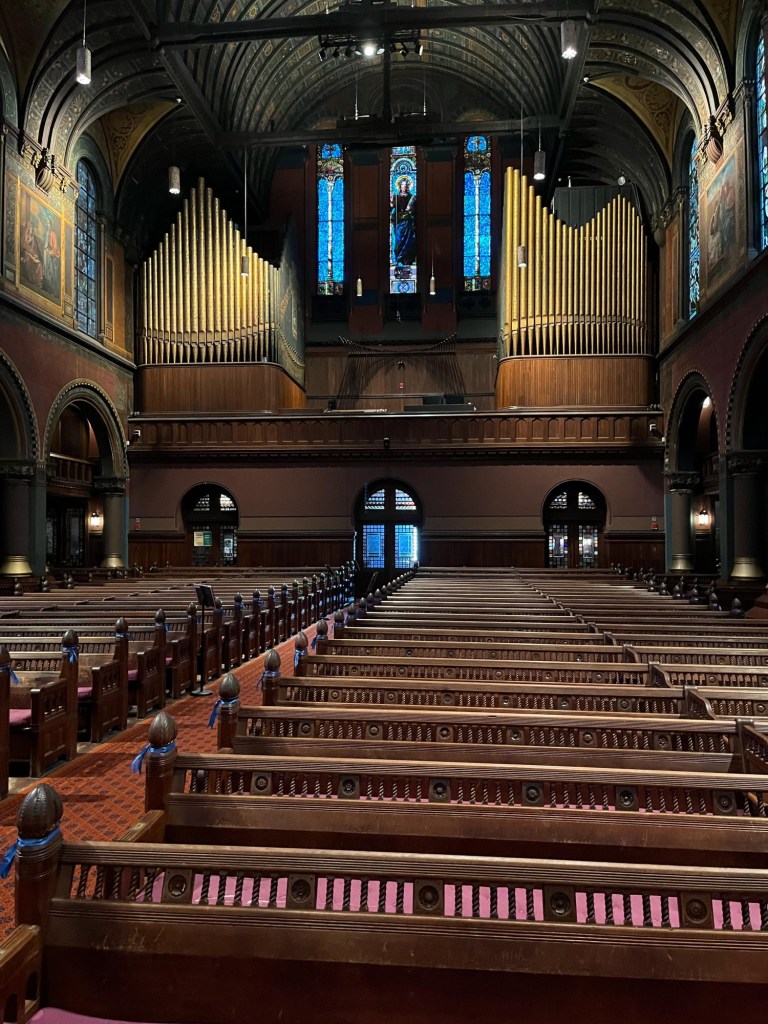 We caught the 11:00am tour of Trinity Church which was led by one of its rectors. An amazing one hour tour, our small group learned so much about the history of the church which is one of the nation’s top architectural sites and a landmark building. I loved the many stained glass windows, especially the one of Christ in a blue background located at the back of the church behind the organ. It is said to have been placed there to inspire the minister when he gave sermons.