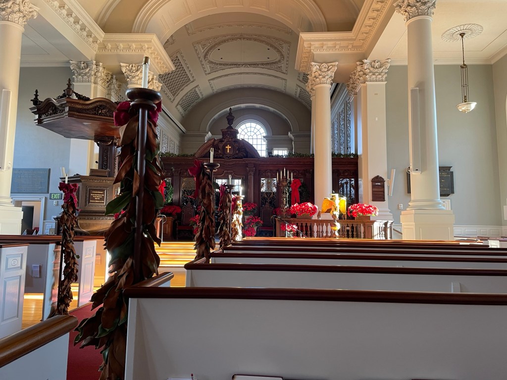 During our tour of Trinity Church we learned that the landmass in this area was originally much narrower…as Boston developed from colonial times they moved ground from the surrounding hills and used it to fill in this marshy area to provide space for more residential housing. The area is now called Back Bay. It has two notable streets, Newbury Street which has higher end stores and some good seafood restaurants like Atlantic Fish Co. and Saltie Girl (this time we opted for some juicy burgers for lunch at Capital Burger), and Commonwealth Avenue which lights up with Christmas lights at night.