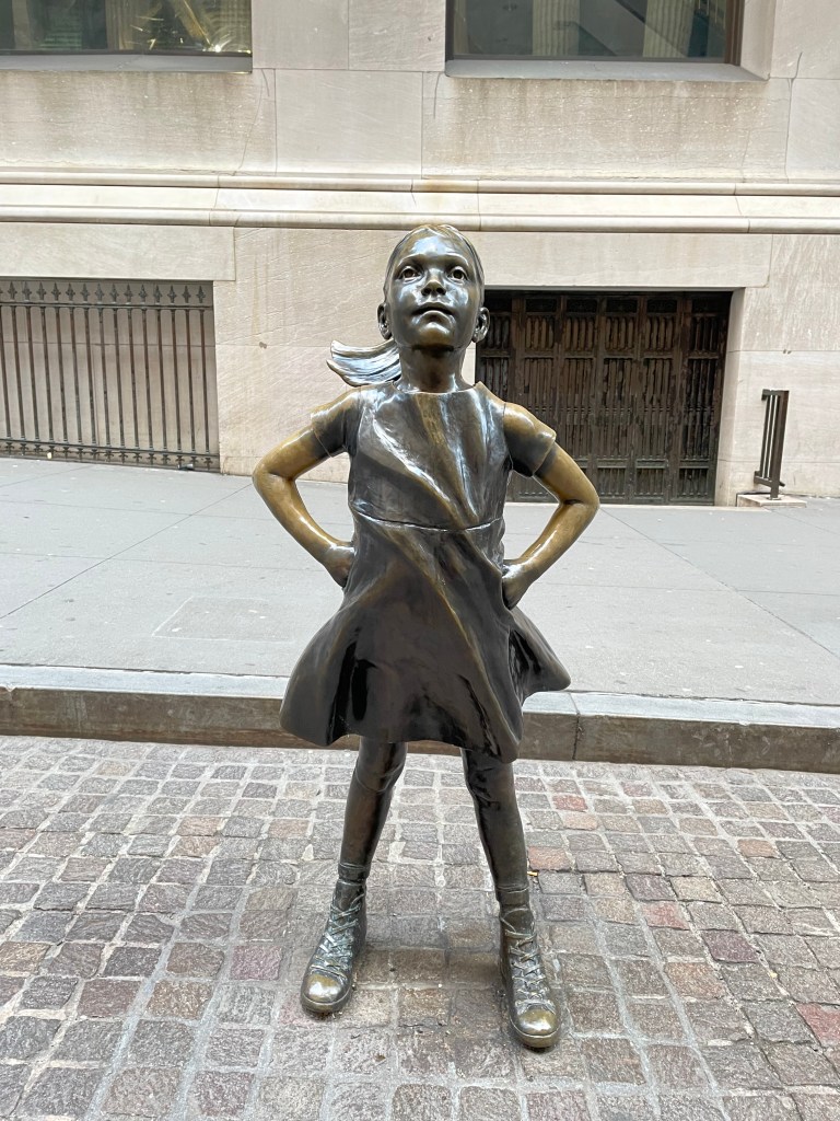 From there you can walk up Broadway and make a right onto Wall Street to see the New York Stock Exchange (NYSE), which is no longer open to the public but can be viewed from the outside. You can get your picture with the statue of the Fearless Girl, located right across from the NYSE.