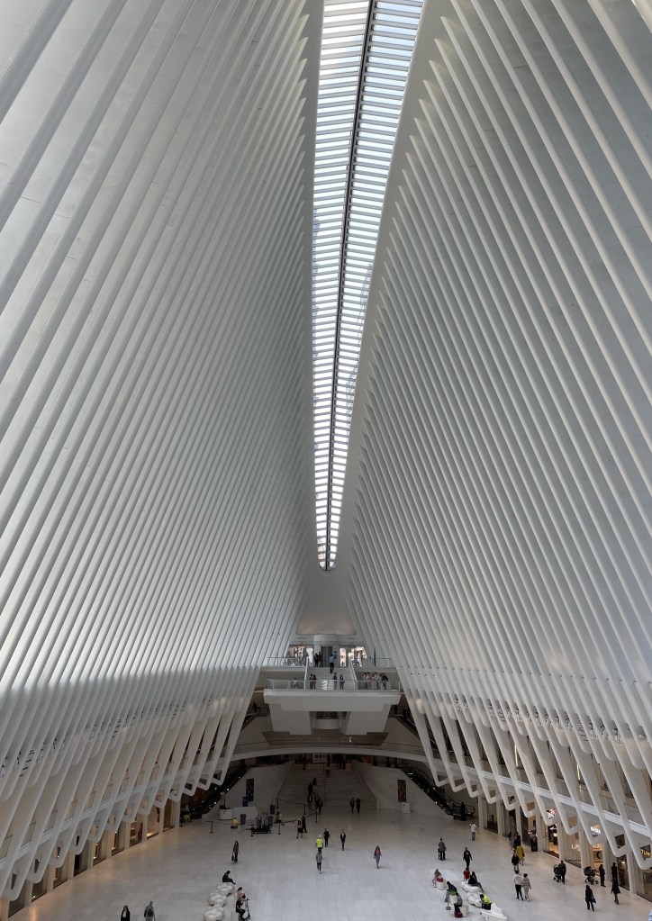 Begin your day at the Oculus, a soaring white structure which according to its architects was made to look both like the shape of an eye looking up at the sky when you look at it from above and like a dove landing when you look at it from the ground. It’s a good place to get your bearings and a bite to eat, with a busy transportation hub, shops, and cafes.